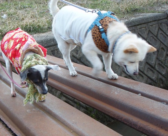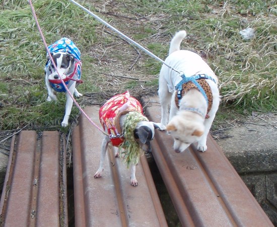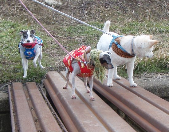 北海道で処分寸前に救出された「日本テリアに似たメス犬・パル」 2匹の先住犬「雑種・ゆり」と「日本テリア・みみ」、そしてパルの日常を、4枚の写真を使って4コママンガ風に紹介します。