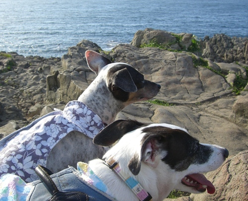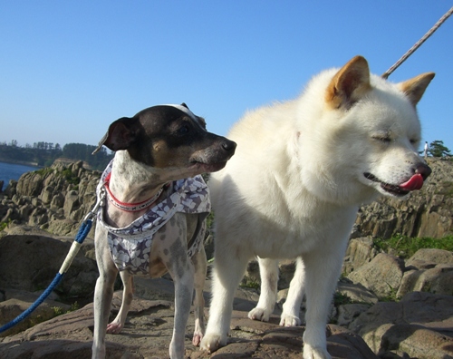 北海道で処分寸前に救出された「日本テリアに似たメス犬・パル」 2匹の先住犬「雑種・ゆり」と「日本テリア・みみ」、そしてパルの日常を、4枚の写真を使って4コママンガ風に紹介します。