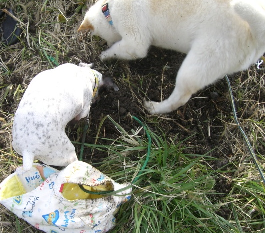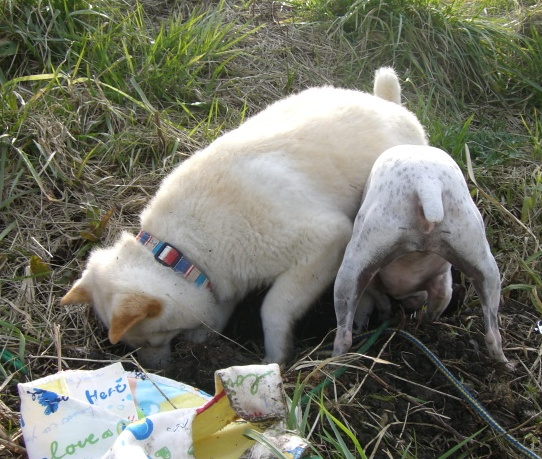 北海道で処分寸前に救出された「日本テリアに似たメス犬・パル」 2匹の先住犬「雑種・ゆり」と「日本テリア・みみ」、そしてパルの日常を、4枚の写真を使って4コママンガ風に紹介します。