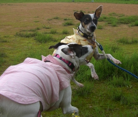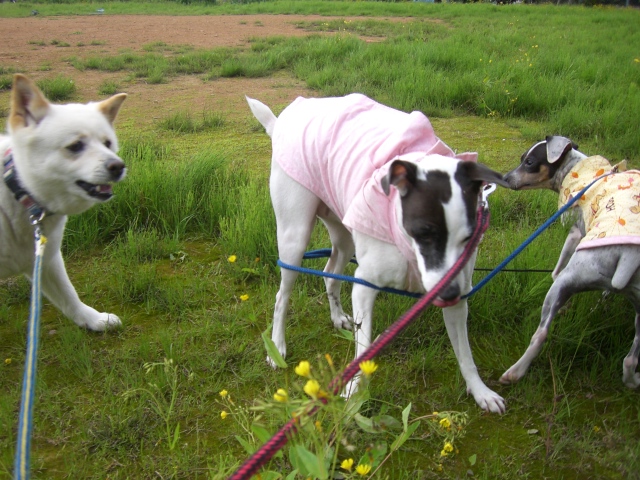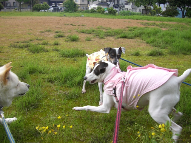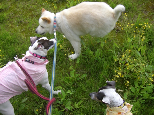 北海道で処分寸前に救出された「日本テリアに似たメス犬・パル」 2匹の先住犬「雑種・ゆり」と「日本テリア・みみ」、そしてパルの日常を、4枚の写真を使って4コママンガ風に紹介します。