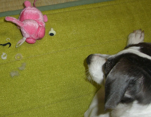 北海道で処分寸前に救出された「日本テリアに似たメス犬・パル」 2匹の先住犬「雑種・ゆり」と「日本テリア・みみ」、そしてパルの日常を、4枚の写真を使って4コママンガ風に紹介します。