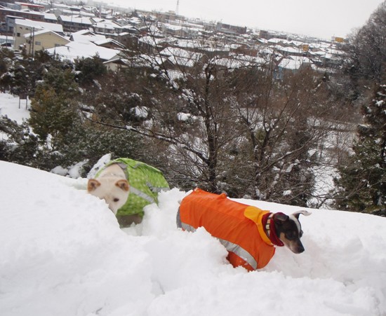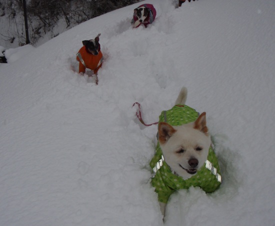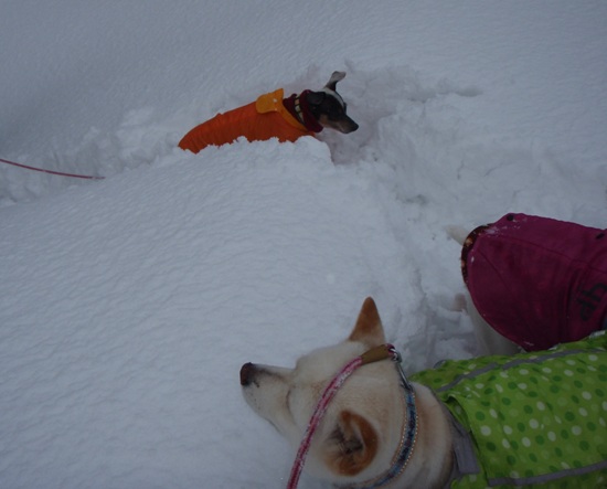 みみは埋もれて、パルは沈んで、でもすごく楽しそうでしたよ。ワンコには景色は見えずに、雪しか見えないと思うのですが、それがかえって興奮してしまうのでしょうか。