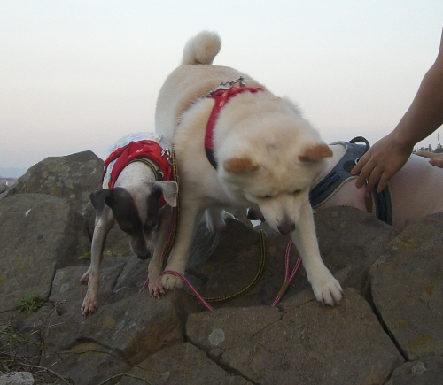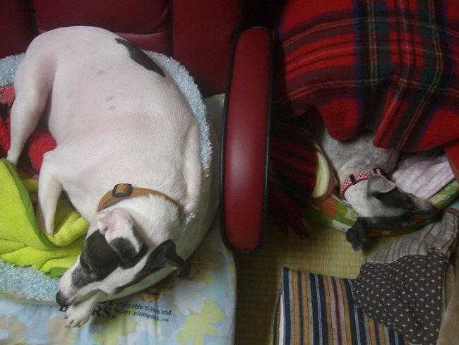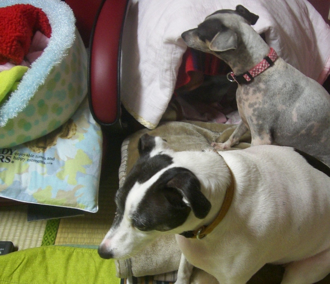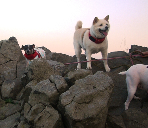 北海道で処分寸前に救出された「日本テリアに似たメス犬・パル」 2匹の先住犬「雑種・ゆり」と「日本テリア・みみ」、そしてパルの日常を、4枚の写真を使って4コママンガ風に紹介します。