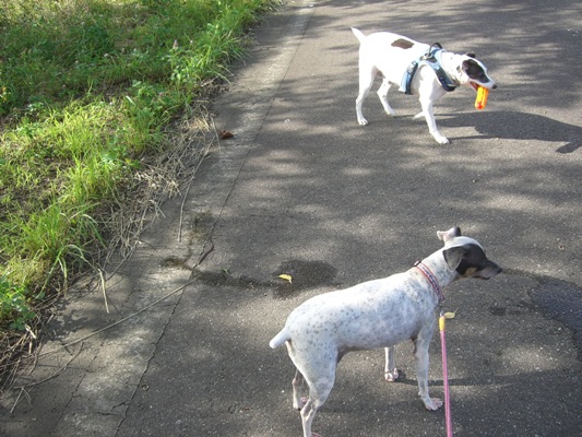 北海道で処分寸前に救出された「日本テリアに似たメス犬・パル」 2匹の先住犬「雑種・ゆり」と「日本テリア・みみ」、そしてパルの日常を、4枚の写真を使って4コママンガ風に紹介します。