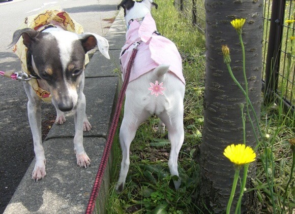 北海道で処分寸前に救出された「日本テリアに似たメス犬・パル」 2匹の先住犬「雑種・ゆり」と「日本テリア・みみ」、そしてパルの日常を、4枚の写真を使って4コママンガ風に紹介します。
