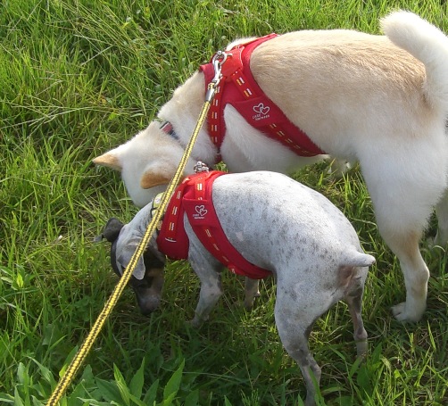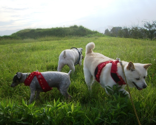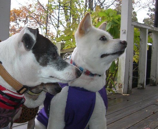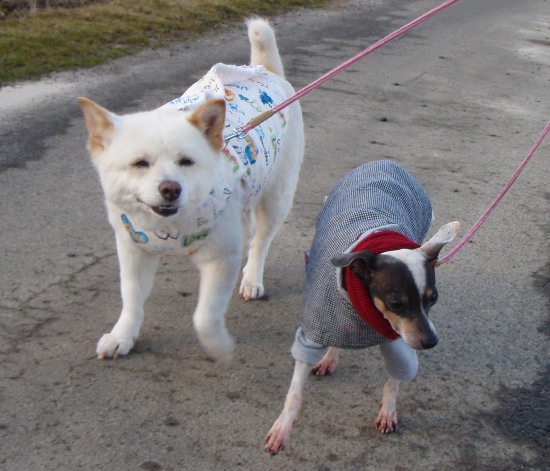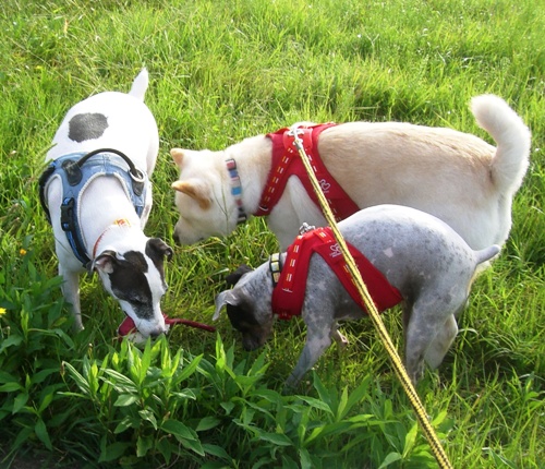 北海道で処分寸前に救出された「日本テリアに似たメス犬・パル」 2匹の先住犬「雑種・ゆり」と「日本テリア・みみ」、そしてパルの日常を、4枚の写真を使って4コママンガ風に紹介します。
