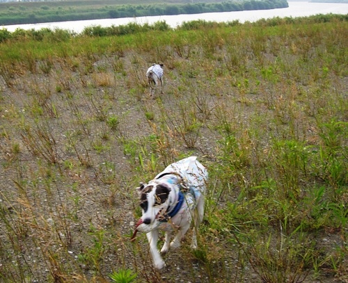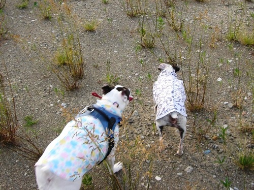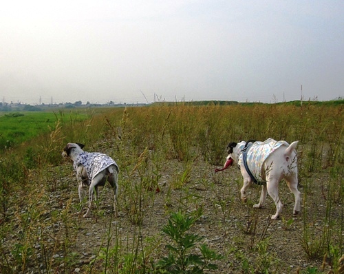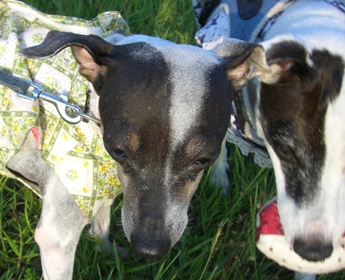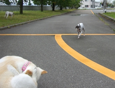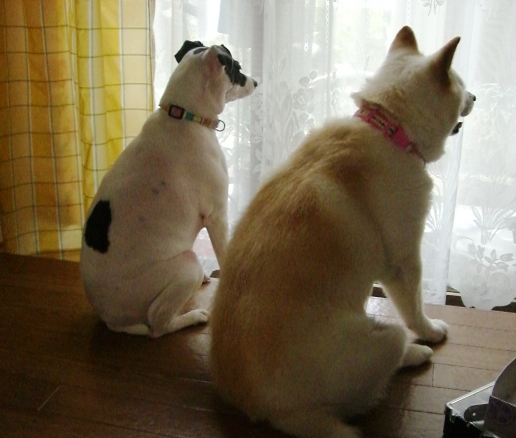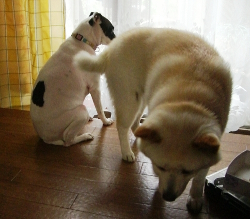 北海道で処分寸前に救出された「日本テリアに似たメス犬・パル」 2匹の先住犬「雑種・ゆり」と「日本テリア・みみ」、そしてパルの日常を、4枚の写真を使って4コママンガ風に紹介します。