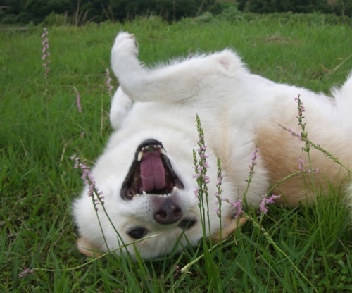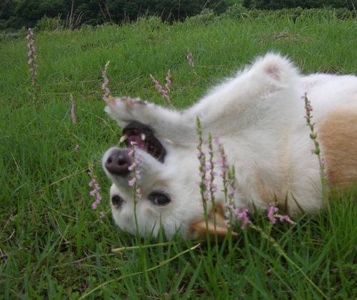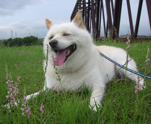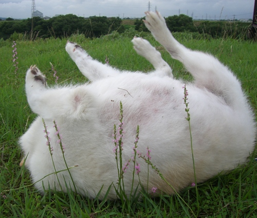 ゆりはこの場所ではよく、ゴロゴロするんですよ。ネジ花がたくさん咲いていて、歩くのに気を使います。