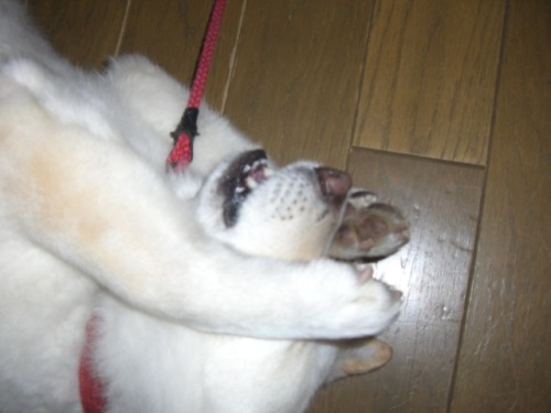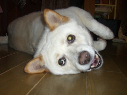 北海道で処分寸前に救出された「日本テリアに似たメス犬・パル」 2匹の先住犬「雑種・ゆり」と「日本テリア・みみ」、そしてパルの日常を、4枚の写真を使って4コママンガ風に紹介します。