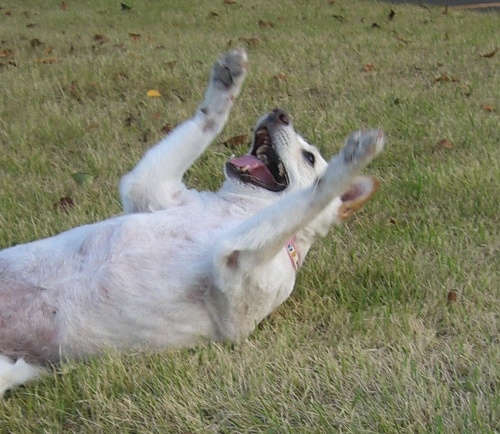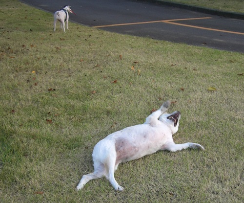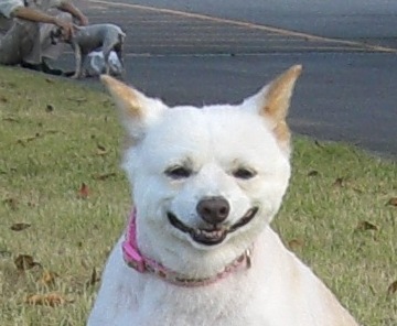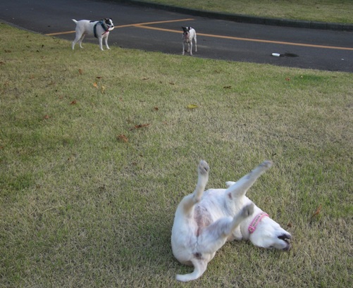 北海道で処分寸前に救出された「日本テリアに似たメス犬・パル」 2匹の先住犬「雑種・ゆり」と「日本テリア・みみ」、そしてパルの日常を、4枚の写真を使って4コママンガ風に紹介します。