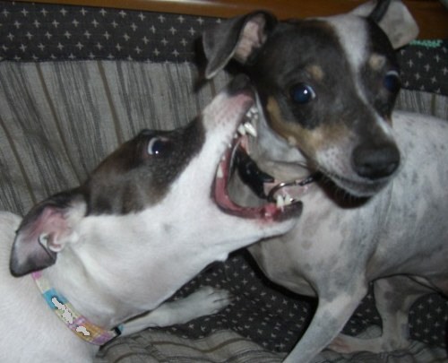 北海道で処分寸前に救出された「日本テリアに似たメス犬・パル」 2匹の先住犬「雑種・ゆり」と「日本テリア・みみ」、そしてパルの日常を、4枚の写真を使って4コママンガ風に紹介します。