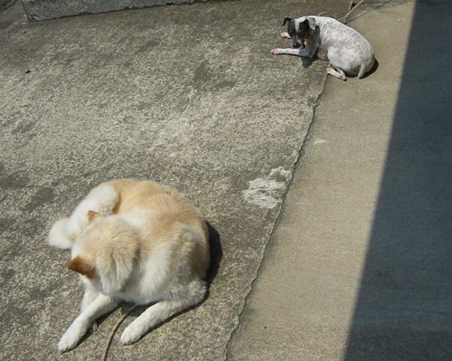 北海道で処分寸前に救出された「日本テリアに似たメス犬・パル」 2匹の先住犬「雑種・ゆり」と「日本テリア・みみ」、そしてパルの日常を、4枚の写真を使って4コママンガ風に紹介します。