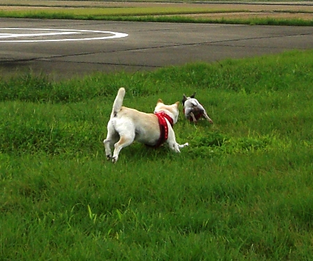 北海道で処分寸前に救出された「日本テリアに似たメス犬・パル」 2匹の先住犬「雑種・ゆり」と「日本テリア・みみ」、そしてパルの日常を、4枚の写真を使って4コママンガ風に紹介します。