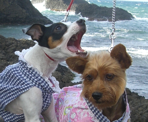 北海道で処分寸前に救出された「日本テリアに似たメス犬・パル」 2匹の先住犬「雑種・ゆり」と「日本テリア・みみ」、そしてパルの日常を、4枚の写真を使って4コママンガ風に紹介します。